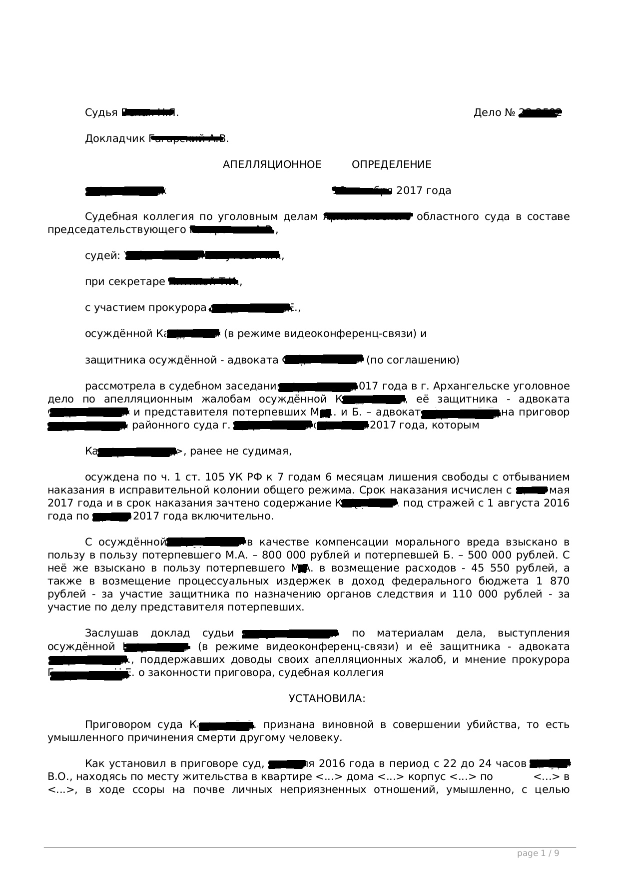 Адвокат по апелляции ст. 105 - 108 УК РФ