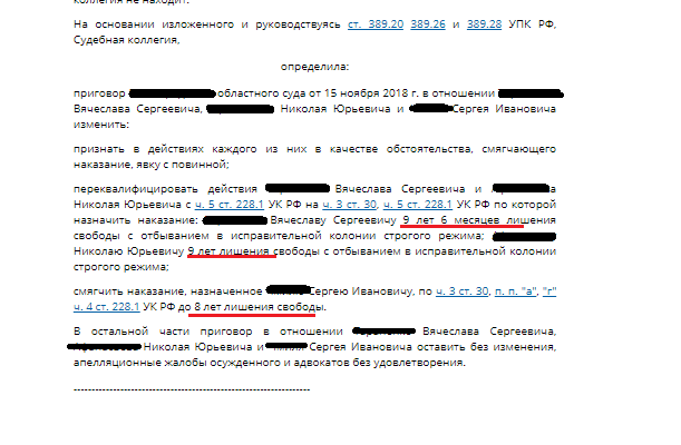 Сотрудничество со следствием одна строчка прописанная в решении суда первой инстанции не повлекла за собой смягчения наказания